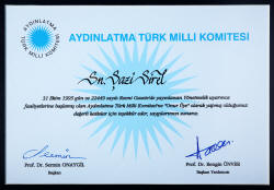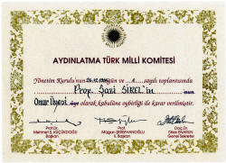 Türk Akustik Derneği Onur Üyeliği Belgesi |